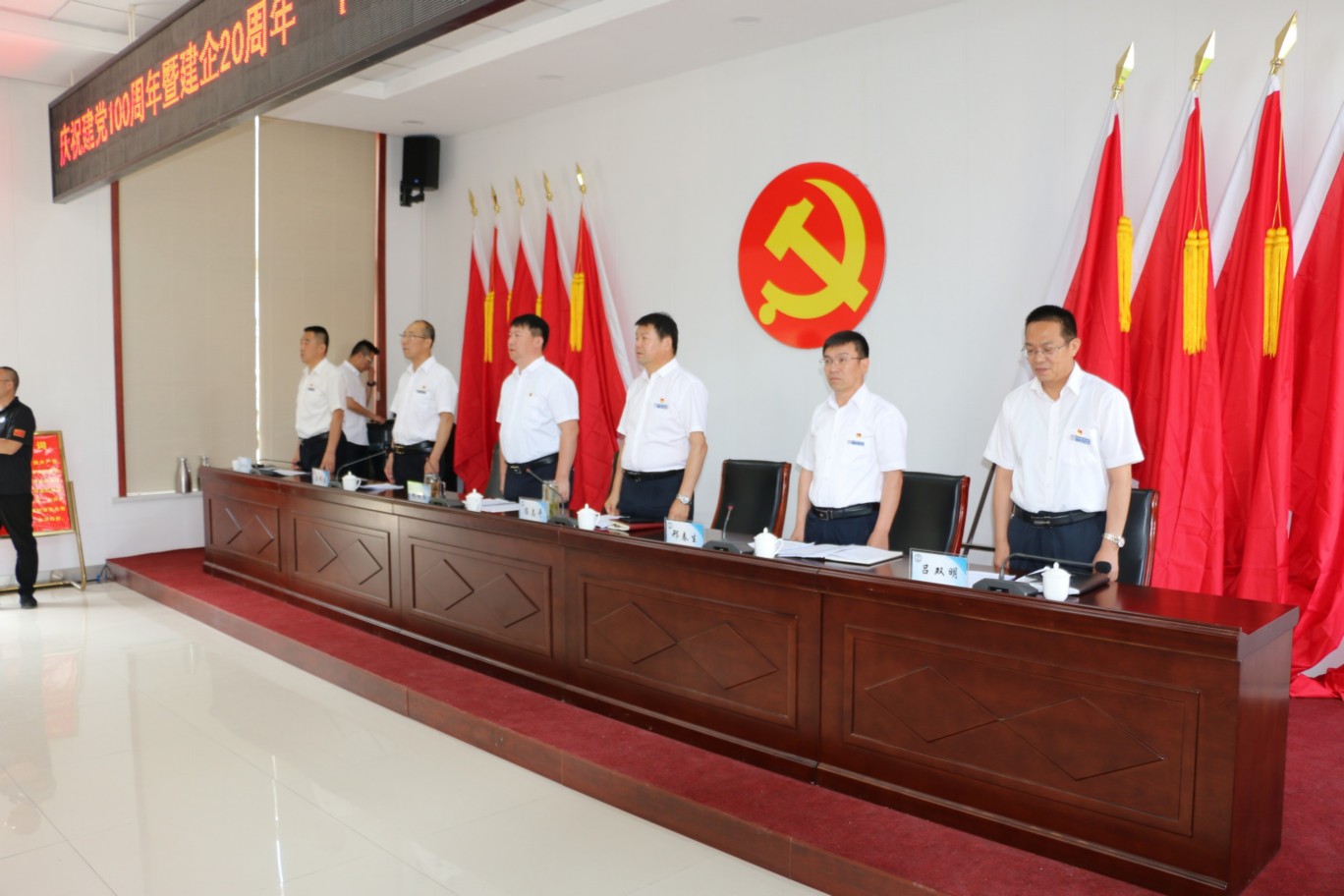 為熱烈慶祝中國共產(chǎn)黨成立100周年,頌揚黨的光輝歷程,謳歌黨的豐功偉業(yè),傳承黨的優(yōu)良傳統(tǒng)和回顧公司發(fā)展歷程,不斷激發(fā)和進一步激勵廣大黨員、干部職工統(tǒng)一意志、團結(jié)拼搏,創(chuàng)先爭優(yōu)的奮斗熱情,實現(xiàn)公司更好更快發(fā)展、全面完成全年各項目標任務(wù),6月30日上午,中共山西大正保安服務(wù)集團有限公司委員會隆重召開慶祝建黨100周年暨建企20周年“十個一”系列活動總結(jié)表彰大會,公司班子成員、中層以上領(lǐng)導(dǎo)、受表彰的先進集體代表和先進個人、2020—2021年度新發(fā)展黨員共計160余人參加會議,大會由集團公司黨委委員、副總經(jīng)理王明生同志主持。
