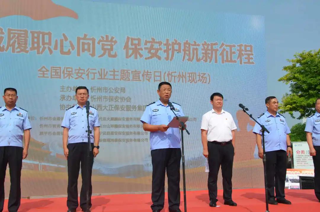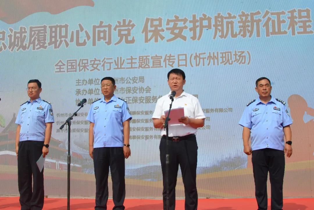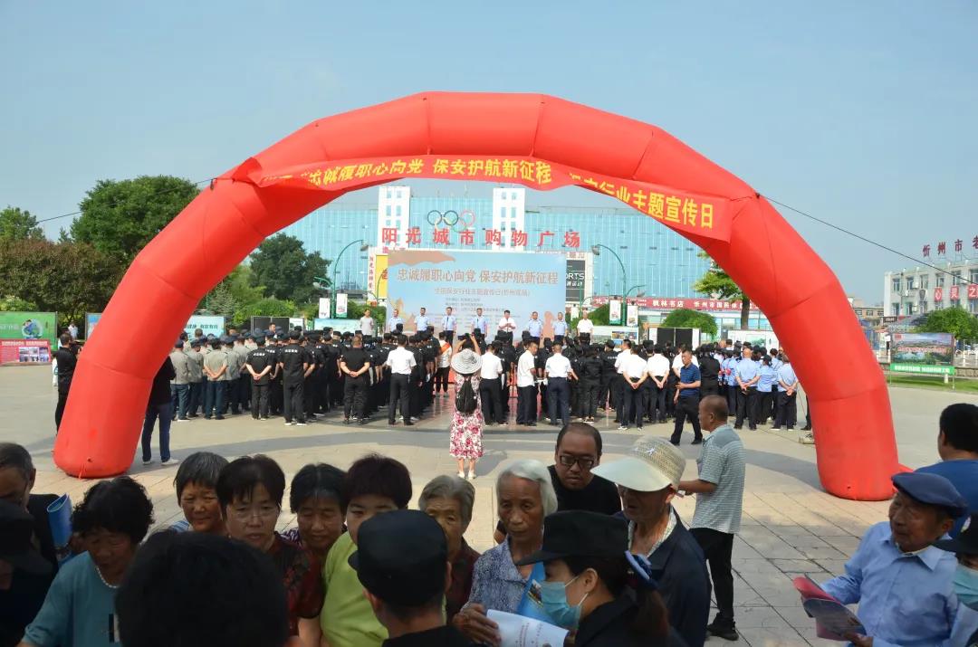 7月24日是我國(guó)保安日,上午9時(shí),我公司員工150人在忻州市體育廣場(chǎng)與其他保安公司員工同步開展以“忠誠(chéng)履職心向黨 保安護(hù)航新征程”為主題的保安行業(yè)主題宣傳日活動(dòng),對(duì)于展示忻州保安隊(duì)伍忠誠(chéng)履職的良好形象,進(jìn)一步教育引導(dǎo)廣大保安員積極投身常態(tài)化疫情防控和維護(hù)社會(huì)治安各項(xiàng)社會(huì)作,具有極為重要的意義。