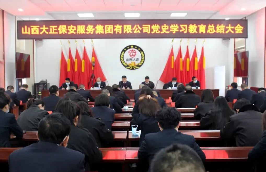 2022年1月24日上午,山西大正保安服務集團有限公司召開黨史學習教育總結大會。會議深入貫徹落實習近平總書記重要指示精神和黨史學習教育總結會議精神,全面總結了一年來公司黨史學習教育工作開展情況,并對公司今后進一步拓展黨史學習教育成果做出了部署,指明了方向。集團公司黨委副書記、總經(jīng)理趙培宏主持會議并作總結講話。黨委副書記、副總經(jīng)理陳志平出席會議并作公司黨史學習教育總結報告。公司領導班子成員、各單位、各分公司負責人、機關全體職工參加大會。