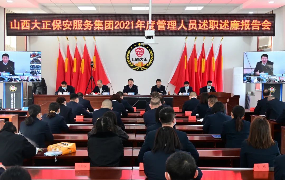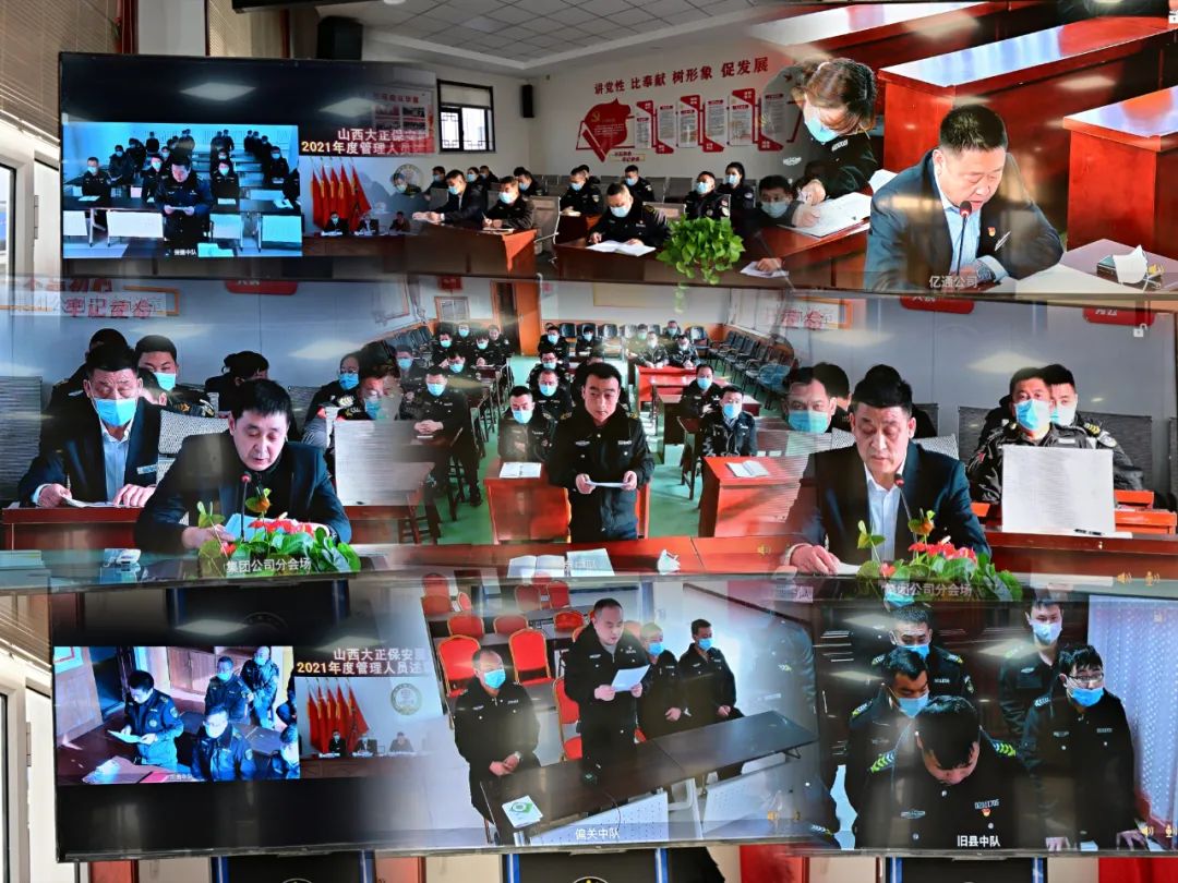 2022年1月8日-9日,山西大正保安服務(wù)集團(tuán)有限公司召開2021年度管理人員述職述廉報告視頻會議,大會主會場設(shè)立在總部會議室,黨委副書記、總經(jīng)理趙培宏出席會議并作重要講話,黨委副書記、副總經(jīng)理陳志平主持會議,公司黨政領(lǐng)導(dǎo)班子成員出席會議,各部門負(fù)責(zé)人及員工代表參會,各分公司、子公司、各縣市基層中隊共計21個分會場以視頻方式參會。