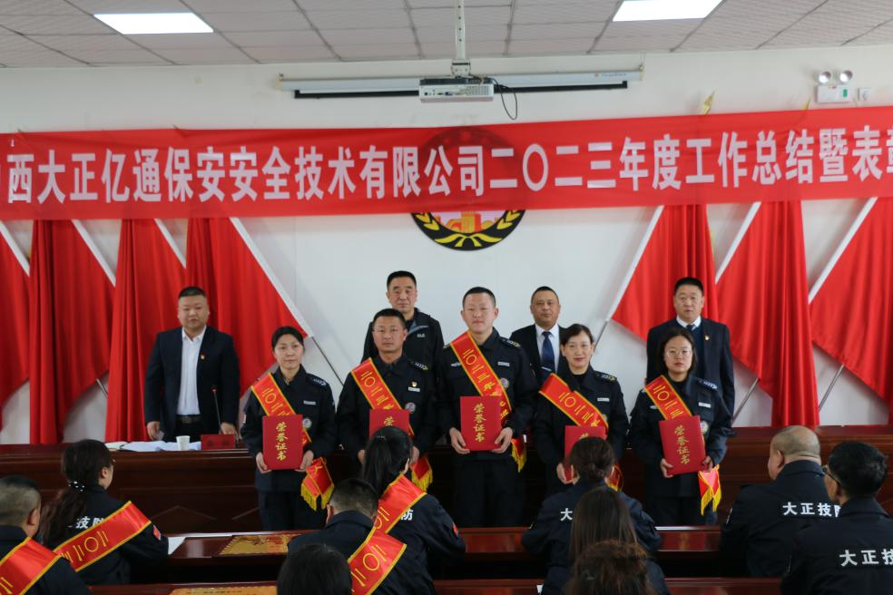 一年春作首,萬(wàn)事實(shí)為要,近日,山西大正億通保安安全技術(shù)有限公司召開(kāi)了2023年度工作總結(jié)暨表彰大會(huì)。會(huì)議在總結(jié)成績(jī)、表彰先進(jìn)的同時(shí)明確了2024年奮斗目標(biāo),動(dòng)員億通全體員工以集團(tuán)公司年度工作計(jì)劃及發(fā)展規(guī)劃為指引務(wù)實(shí)擔(dān)當(dāng)、開(kāi)拓進(jìn)取,為推動(dòng)億通公司創(chuàng)新發(fā)展努力工作,為集團(tuán)公司高質(zhì)量發(fā)展貢獻(xiàn)力量。集團(tuán)公司董事、副總經(jīng)理張瑞東出席會(huì)議并講話,億通公司經(jīng)理張龍作2023年度《團(tuán)結(jié)奮進(jìn)創(chuàng)佳績(jī) 真抓實(shí)干譜新篇》工作報(bào)告,并就2024年工作進(jìn)行了安排部署,會(huì)議由億通公司副經(jīng)理袁園主持。