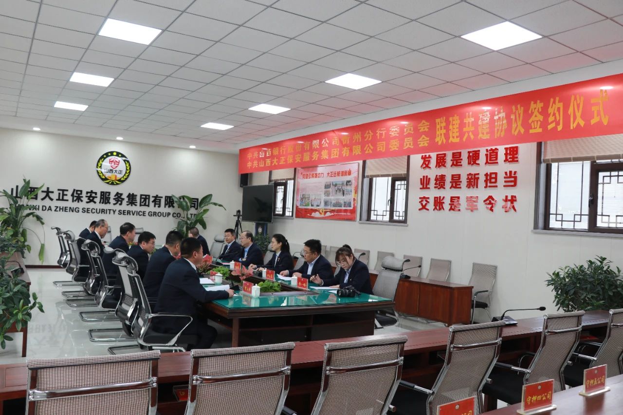 3月11日,山西銀行忻州分行與山西大正保安服務(wù)集團(tuán)黨建聯(lián)建簽約儀式在大正保安服務(wù)集團(tuán)隆重舉行。山西銀行忻州分行黨委書(shū)記、行長(zhǎng)宋波,山西大正保安服務(wù)集團(tuán)黨委書(shū)記、董事長(zhǎng)趙培宏出席活動(dòng)并致辭,共同表達(dá)了對(duì)黨建聯(lián)建工作的高度重視和對(duì)合作前景的期待。同時(shí),分別代表雙方簽署黨建聯(lián)建共建協(xié)議。雙方領(lǐng)導(dǎo)班子成員與相關(guān)部門(mén)負(fù)責(zé)人參加活動(dòng)。
