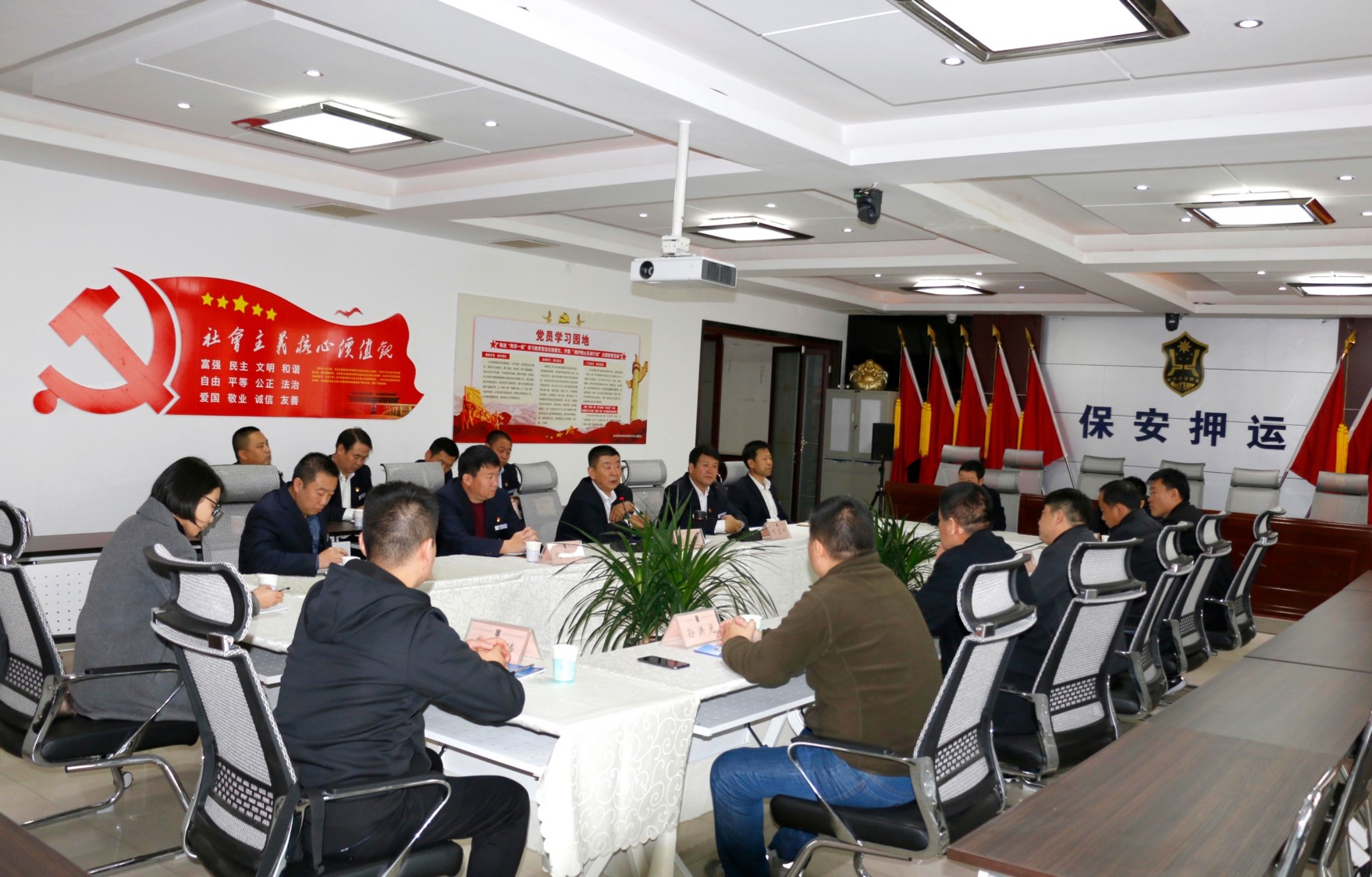 11月10日,河南省永城市金盾守押公司總經(jīng)理萬建偉一行到忻州市保安押運(yùn)護(hù)衛(wèi)中心考察交流。公司總經(jīng)理張躍生、黨委書記陳志平接待來賓,機(jī)關(guān)部分領(lǐng)導(dǎo)陪同考察。