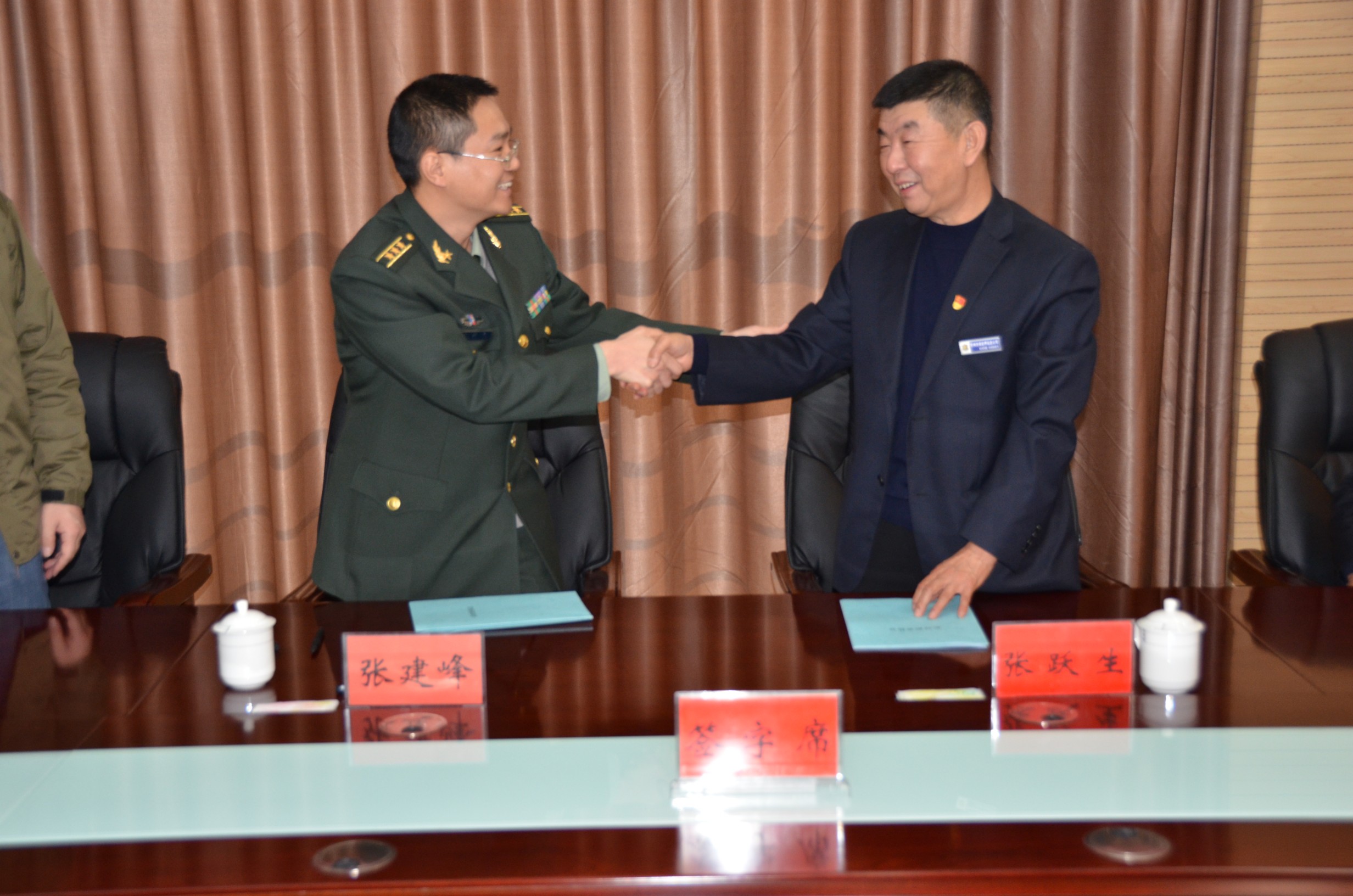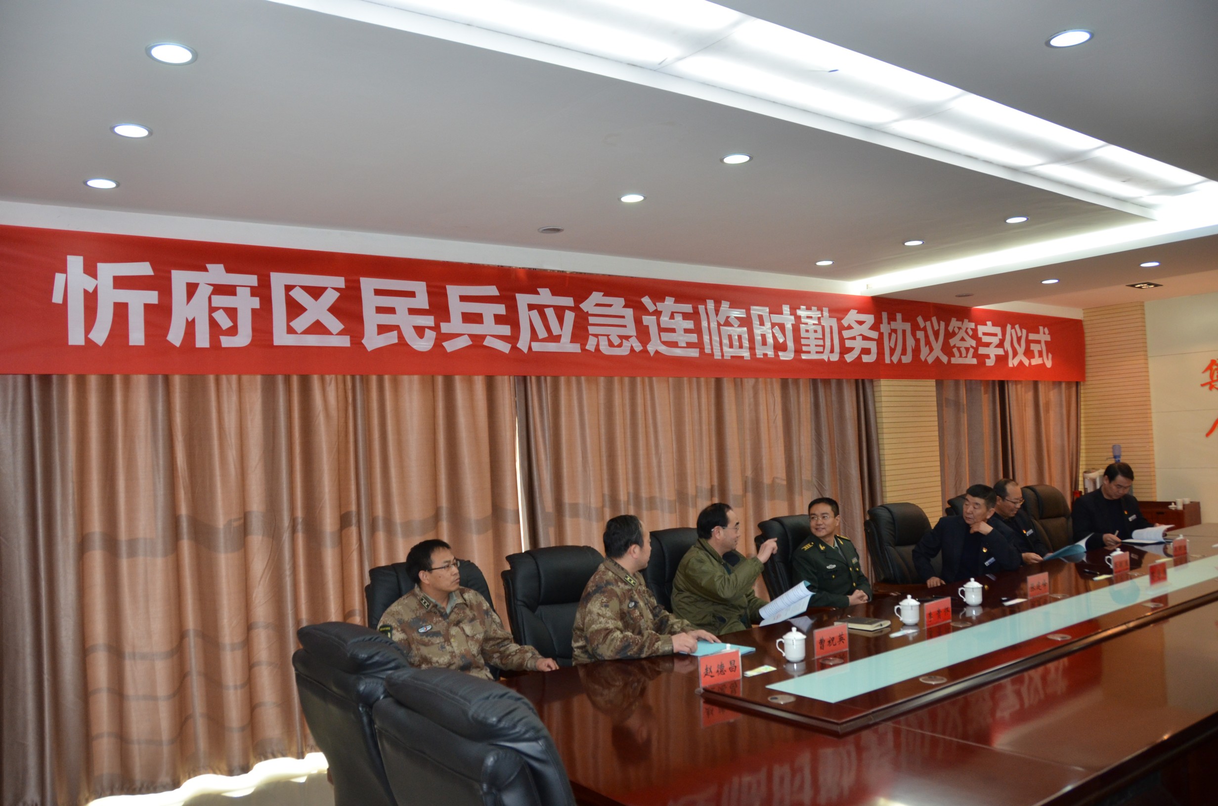忻府區(qū)人民武裝部部長張建峰同志召集所屬負(fù)責(zé)人與我公司領(lǐng)導(dǎo)在該部會(huì)議室召開忻府區(qū)民兵應(yīng)急連臨時(shí)勤務(wù)協(xié)議簽字儀式。雙方領(lǐng)導(dǎo)暢談軍旅生涯,暢所欲言,對(duì)合作開展執(zhí)行勤務(wù)事宜進(jìn)行細(xì)致研究,武裝部領(lǐng)導(dǎo)對(duì)我公司的隊(duì)伍建設(shè)作風(fēng)以及企業(yè)服務(wù)精神面貌給與了充分肯定。