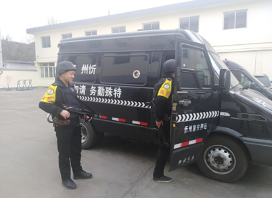 圖為:守押繁峙中隊押運員在執(zhí)行任務中