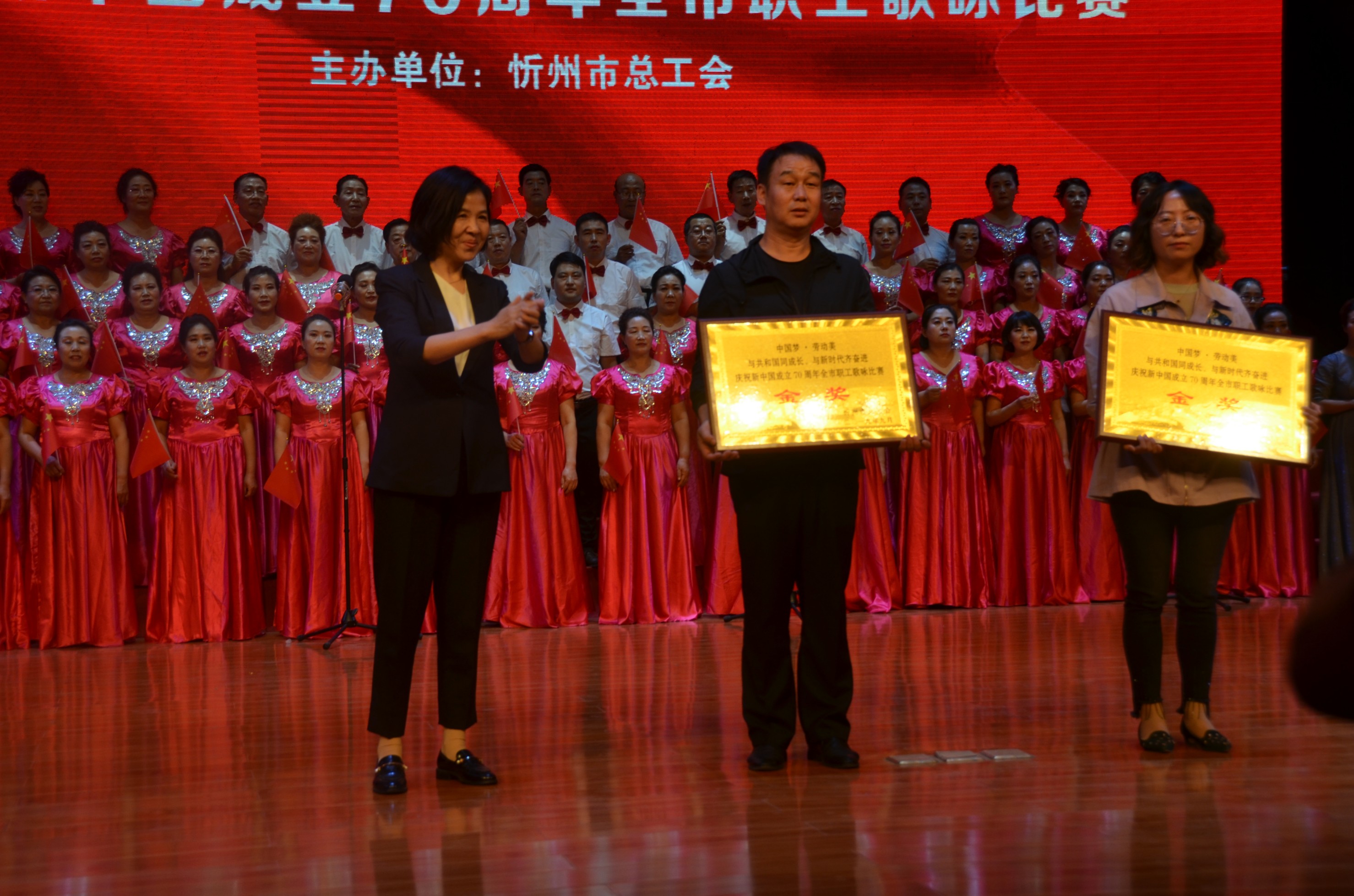 9月19日下午,由忻州市總工會(huì)舉辦的以“中國(guó)夢(mèng)·勞動(dòng)美”與共和國(guó)同成長(zhǎng) 與新時(shí)代齊奮進(jìn)為主題的慶祝中華人民共和國(guó)成立70周年全市職工歌詠比賽在忻州市職業(yè)技術(shù)學(xué)院正式拉開帷幕。我公司組隊(duì)參加并喜獲金獎(jiǎng)。公司黨委書記、董事長(zhǎng)張躍生,黨委副書記、副總經(jīng)理陳志平,黨委委員、副總經(jīng)理趙培宏現(xiàn)場(chǎng)觀賽為參賽隊(duì)員加油鼓勁。