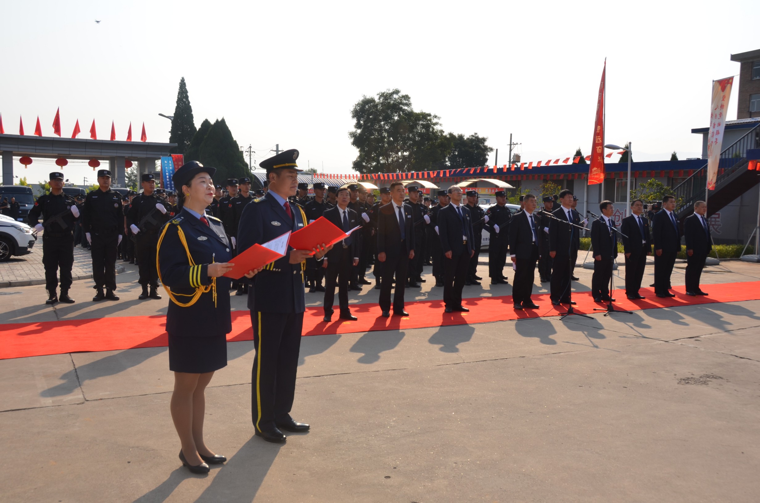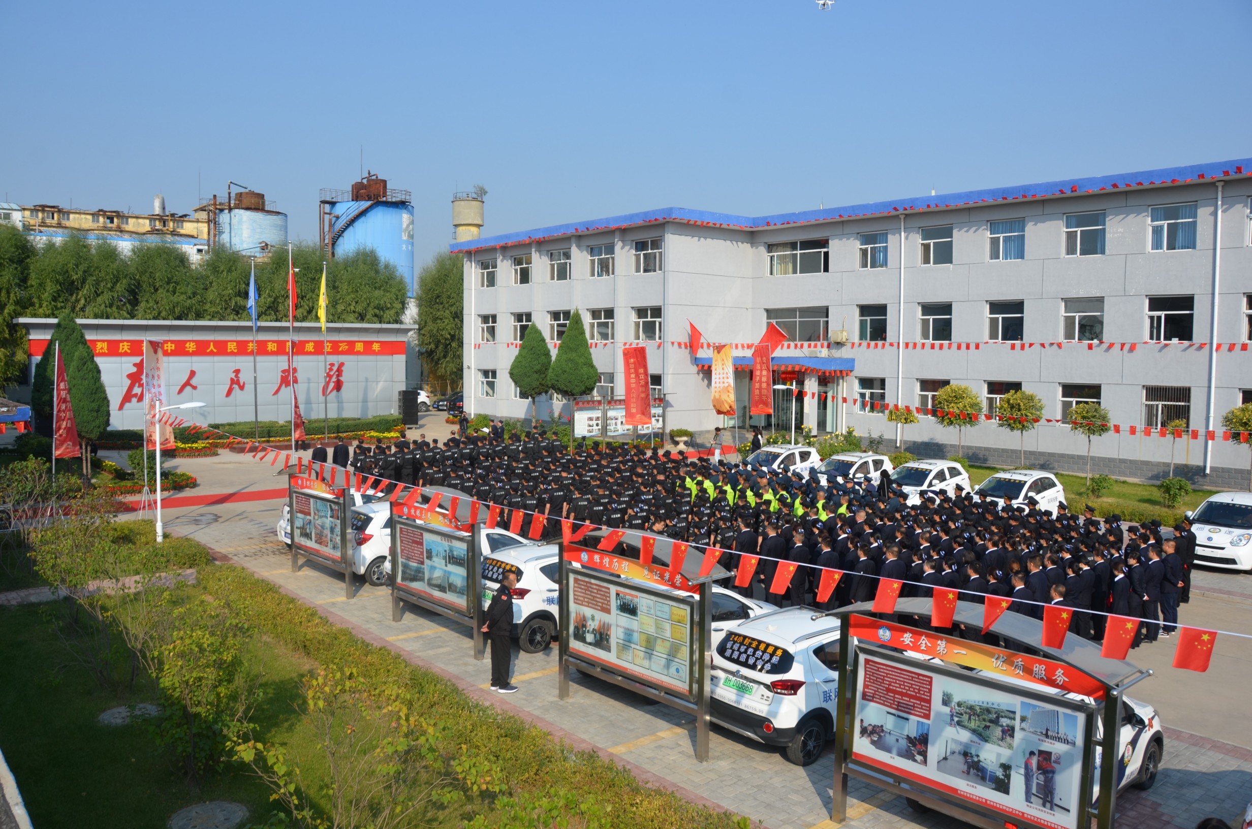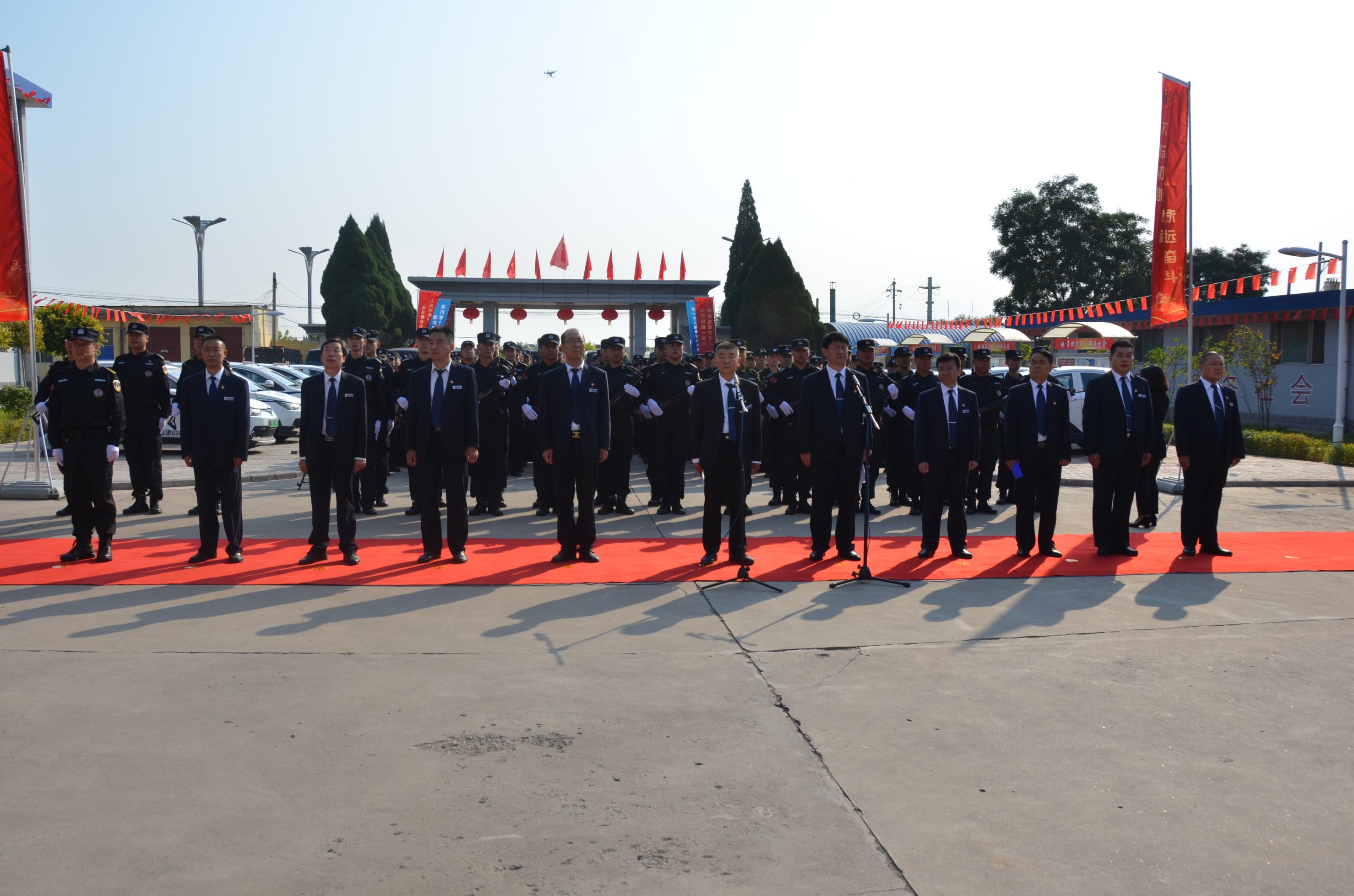 張躍生指出:回顧公司走過(guò)的十九年創(chuàng)業(yè)發(fā)展歷程,我們不斷發(fā)展、不斷向前,廣大黨員干部員工始終保持昂揚(yáng)向上的精神狀態(tài),開(kāi)拓創(chuàng)新、銳意進(jìn)取、團(tuán)結(jié)拼搏、無(wú)私奉獻(xiàn),寫(xiě)下了不平凡的詩(shī)篇。希望面臨安保行業(yè)的新機(jī)遇和新挑戰(zhàn),廣大黨員干部職工要統(tǒng)一思想、提高認(rèn)識(shí),增強(qiáng)“四個(gè)意識(shí)”、堅(jiān)定“四個(gè)自信”、做到“兩個(gè)維護(hù)”,深入開(kāi)展“不忘初心、牢記使命”主題教育,同心同德、真抓實(shí)干,全力以赴做好本職工作,以?xún)?yōu)異的成績(jī)獻(xiàn)禮新中國(guó)七十華誕!儀式在現(xiàn)場(chǎng)全體人員齊聲高唱的《歌唱祖國(guó)》歌聲中達(dá)到高潮,大家揮舞著手中的國(guó)旗,紛紛表達(dá)對(duì)祖國(guó)的良好祝愿。