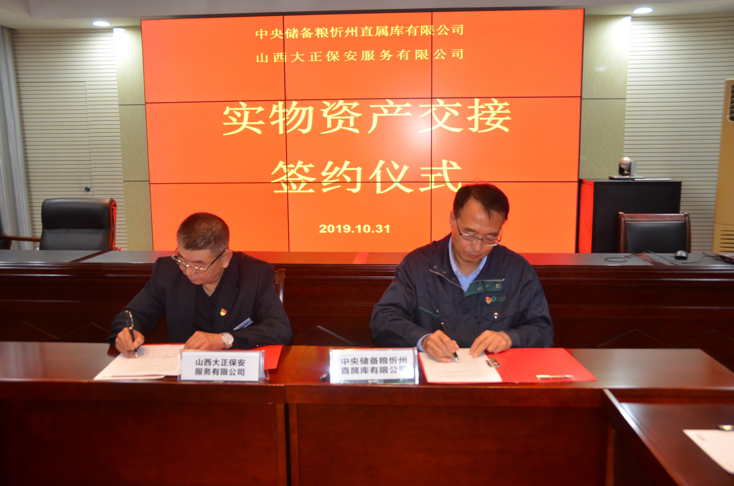 10月31日,山西大正保安服務(wù)(集團(tuán))有限公司與中儲(chǔ)糧忻州直屬庫有限公司在中儲(chǔ)糧忻州直屬庫有限公司會(huì)議室簽署資產(chǎn)交接協(xié)議,正式交接中儲(chǔ)糧忻州直屬庫有限公司轉(zhuǎn)讓的原紅鑫淀粉廠項(xiàng)目土地、建筑等資產(chǎn)。