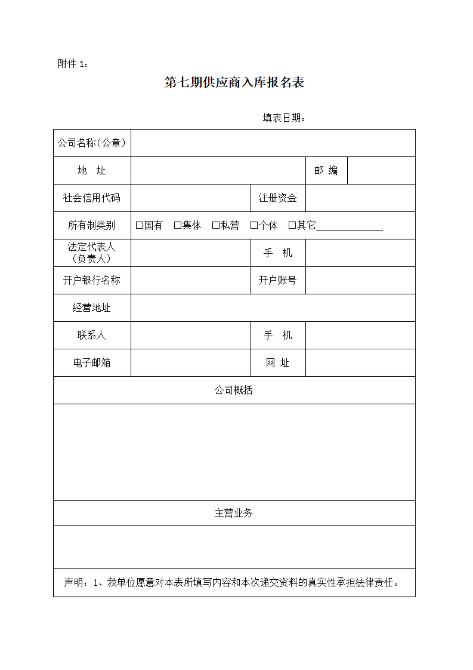 1、供應(yīng)商入庫報(bào)名表(見附件);