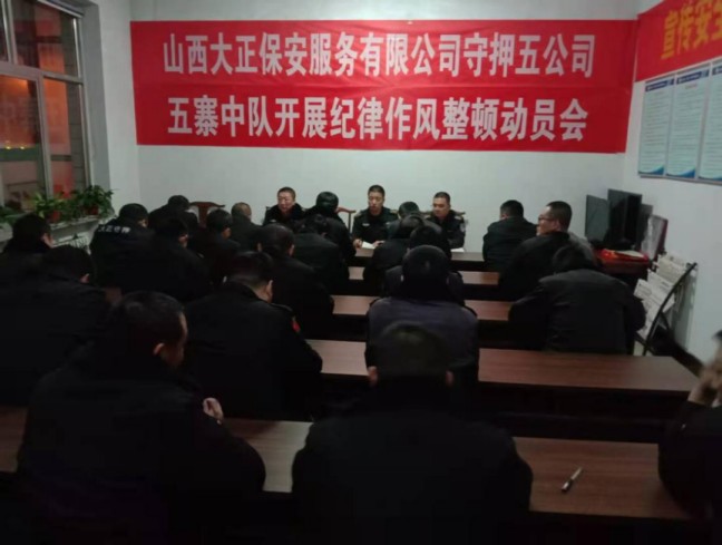 為了積極響應(yīng)集團公司“紀律作風(fēng)集中整頓活動”的安排部署,11月25日,守押五公司在所屬五寨中隊開展紀律作風(fēng)整頓暨基層中隊自查自糾活動專題會議。會議由守押五公司經(jīng)理王文章主持,副經(jīng)理王玉江及五寨中隊全體隊員參加了會議。