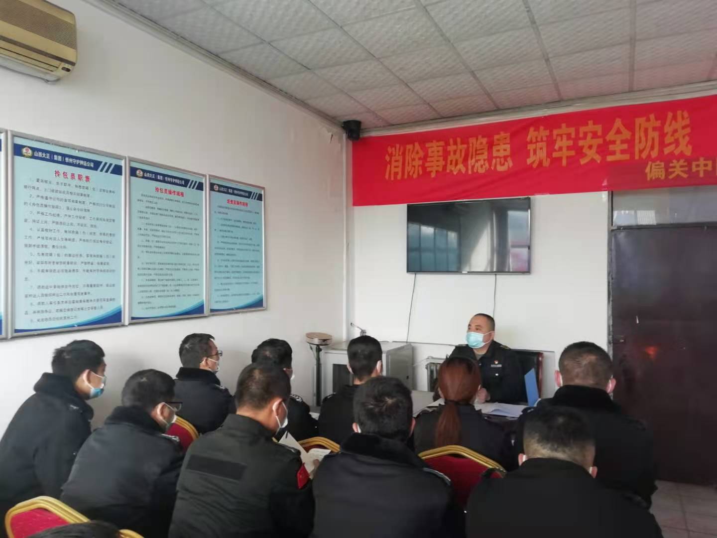 11月20日,接到關(guān)于下發(fā)《山西大正保安服務(wù)有限公司開展紀律作風(fēng)集中整頓活動實施方案》的通知,保德中隊當(dāng)晚對文件精神進行了傳達與學(xué)習(xí),并就文件精神要求,中隊上下統(tǒng)一思想,充分認識本次工作紀律作風(fēng)整頓活動的重大意義。