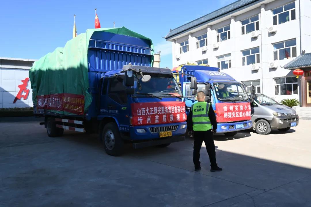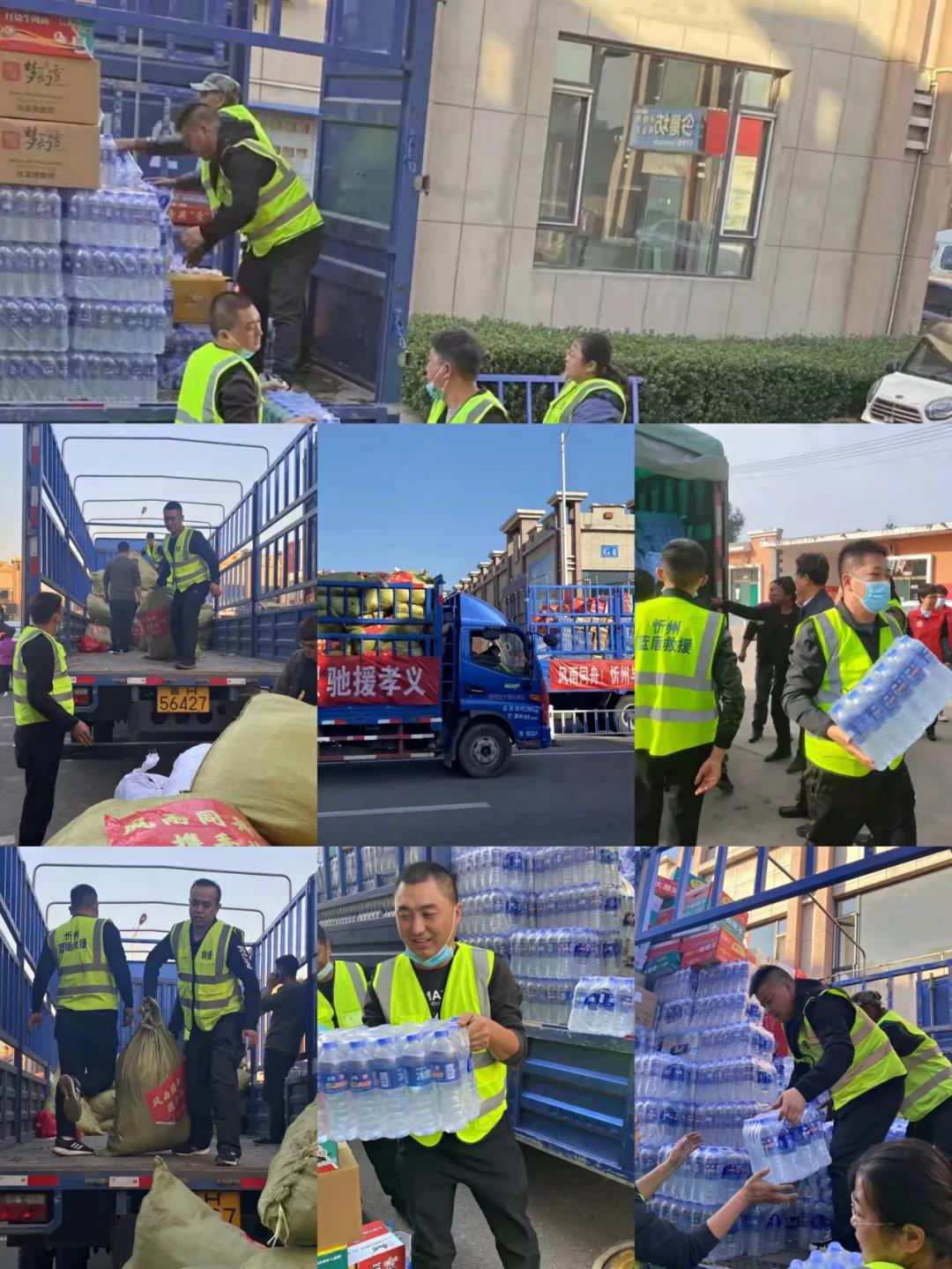 10月16日,山西大正保安服務(wù)集團(tuán)有限公司出動大型貨車兩輛,攜手忻州藍(lán)盾應(yīng)急救援隊(duì)(籌)及社會各界愛心人士,裝載著籌集的消毒水40桶、消毒液15箱、方便面320箱、脆筒5箱、礦泉水600件、沙袋4000個、面包35箱、口罩15500個和由忻州實(shí)驗(yàn)小學(xué)等籌集的衣物9000余件等物資,驅(qū)車奔赴孝義市災(zāi)區(qū)。