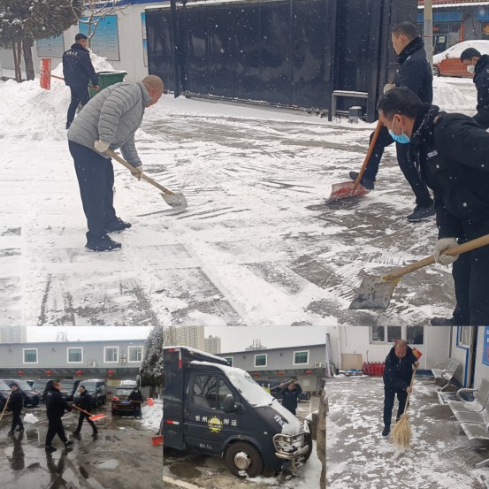 在各中隊(duì)安排早上出勤車輛有序出發(fā)后,經(jīng)理?xiàng)钯F文充分發(fā)揮黨員先鋒模范作用,帶領(lǐng)各中隊(duì)員工齊上陣,投入到掃雪活動(dòng)中,全體隊(duì)員不畏嚴(yán)寒,充分發(fā)揮了吃苦耐勞、頑強(qiáng)拼搏的戰(zhàn)斗精神,他們手中揮舞著鐵鍬、推鏟、掃把等勞動(dòng)工具,干勁十足,經(jīng)過幾小時(shí)的努力,押運(yùn)車輛、公司院內(nèi)及周邊道路的積雪全部清理干凈,保障了人員車輛的出行安全,為城區(qū)守押金融業(yè)務(wù)穩(wěn)定有序運(yùn)行提供了強(qiáng)有力的安全保障。