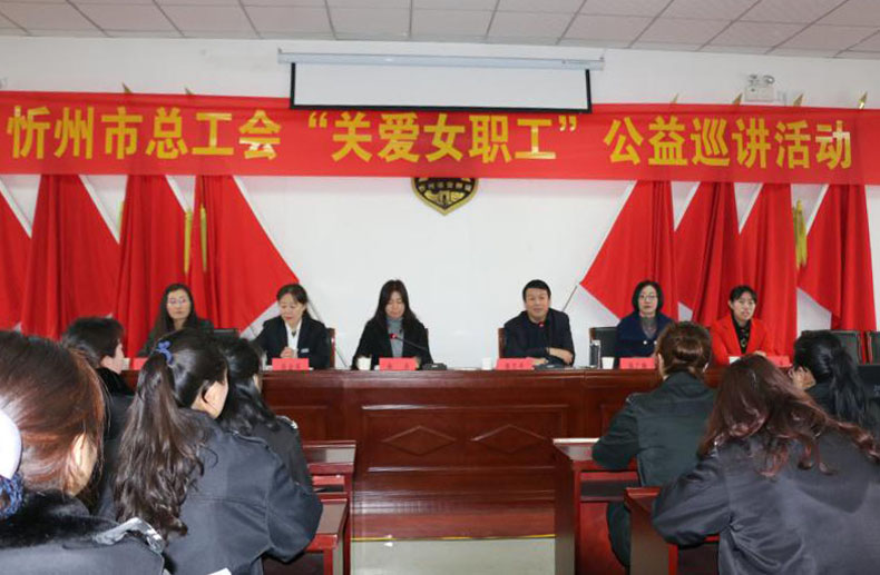 在“三八”婦女節(jié)來臨之際,3月5日上午,忻州市總工會生活保障女職工部部長郝華、工會保障部李美英和秦辛一行帶著市總工會對我公司全體女職工的關愛,在我公司西院三樓會議室舉辦“關愛女職工”公益巡講活動。公司黨委書記陳志平和工會副主席張金華陪同。