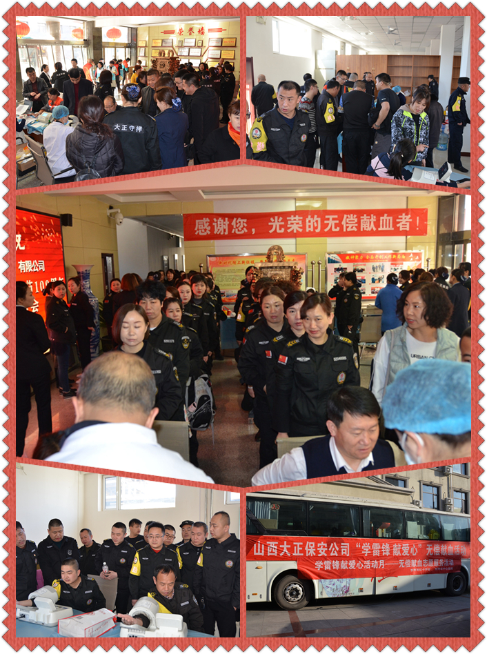 血液有限,愛心無限。3月7日和13日,山西大正保安服務有限公司與忻州市紅十字會、忻州市中心血站聯(lián)合開展了“學雷鋒 獻愛心”職工無償獻血活動,此次在總公司和分公司分別設立采血點,提前發(fā)出倡議,營造良好聲勢。據(jù)統(tǒng)計,公司參與本次獻血活動的員工志愿者約150余人,成功獻血的員工志愿者約100余人。