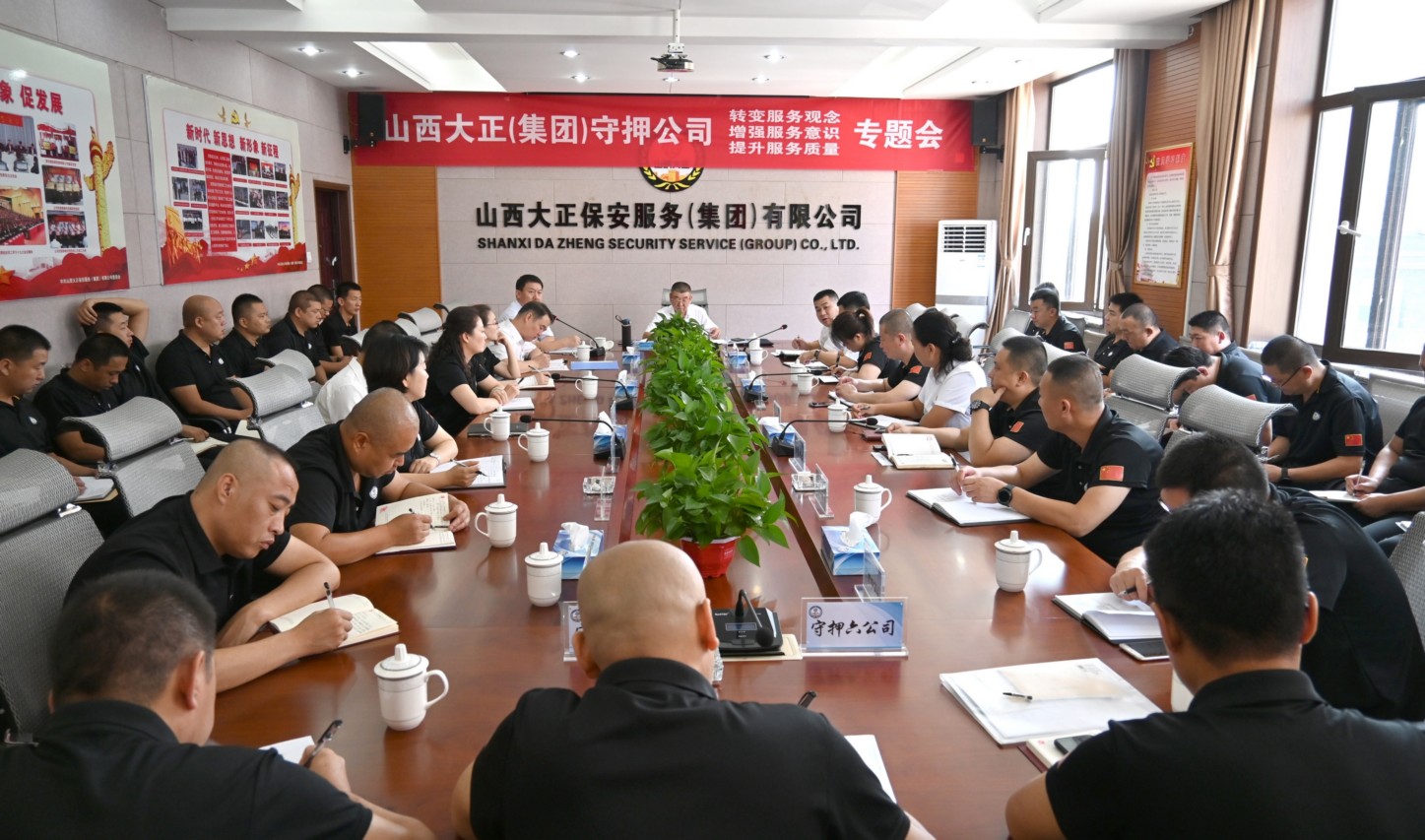 7月21日上午,山西大正(集團(tuán))守押公司召開(kāi)轉(zhuǎn)變服務(wù)觀念、增強(qiáng)服務(wù)意識(shí)、提升服務(wù)質(zhì)量專(zhuān)題會(huì)議。集團(tuán)公司黨委書(shū)記、董事長(zhǎng)張躍生出席并做重要講話(huà)。黨委副書(shū)記、總經(jīng)理趙培宏主持會(huì)議。黨委委員、副總經(jīng)理王明生,總經(jīng)理助理、辦公室主任宋林兔,總經(jīng)理助理、守押公司副總經(jīng)理寇星云、守押公司其他領(lǐng)導(dǎo)及集團(tuán)公司一室七中心負(fù)責(zé)人,基層分公司、中隊(duì)負(fù)責(zé)人四十余人參加。