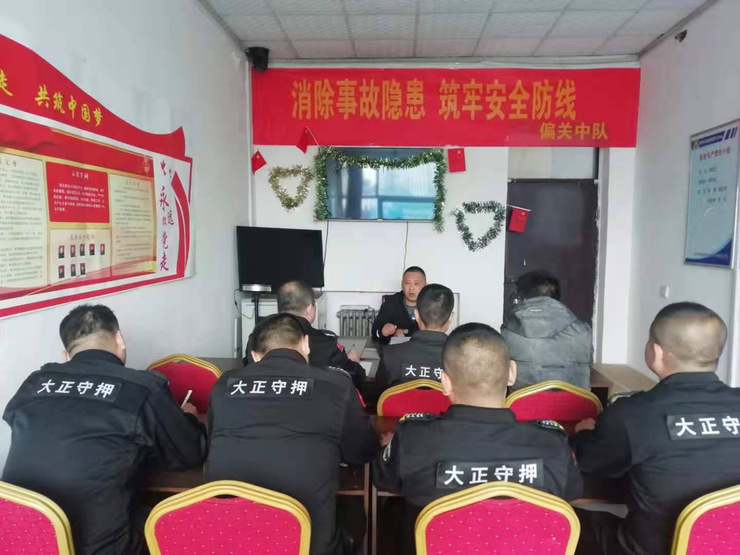 督導(dǎo)組通過實(shí)地檢查,對(duì)偏關(guān)中隊(duì)的各項(xiàng)安全設(shè)施和規(guī)范管理工作給予了充分肯定和高度評(píng)價(jià),并對(duì)偏關(guān)中隊(duì)下一步的安全工作提出了具體要求:一是加強(qiáng)對(duì)重點(diǎn)部位的值守管理力度;二是對(duì)技防設(shè)施進(jìn)行檢查維護(hù),確保安防設(shè)施設(shè)備的正常運(yùn)轉(zhuǎn);三是高度重視槍彈保管工作,牢固樹立“槍彈無小事”的意識(shí),全面落實(shí)各項(xiàng)槍支管理制度,嚴(yán)格執(zhí)行槍支管理規(guī)定和使用交接登記制度,務(wù)必確保槍支不出任何問題;四是牢固樹立安全防范意識(shí),熟練掌握、定期組織各種應(yīng)急處置預(yù)案演練,提高安全防范和處置突發(fā)事件的能力;五是加強(qiáng)押運(yùn)人員的思想教育,嚴(yán)格落實(shí)談心談話制度,了解隊(duì)員思想動(dòng)態(tài),及時(shí)發(fā)現(xiàn)和解決各類苗頭性、傾向性不穩(wěn)定因素,完善防范、化解和控制措施,確保押運(yùn)隊(duì)伍安全穩(wěn)定。