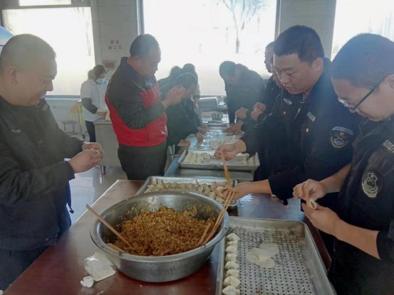 時值傳統(tǒng)節(jié)日冬至到來之際,公司食堂為保證每位員工都能在冬至吃上餃子,組織所屬員工開展了包餃子活動。大家根據(jù)自己的所學所能,有的和面、有的搟皮、有的包餃子,互相合作,其樂融融,包的餃子也是五花八門,大家紛紛展示自己包的餃子,帶著幸福的微笑,期待著冬至時節(jié)能吃到自己親手包的餃子。