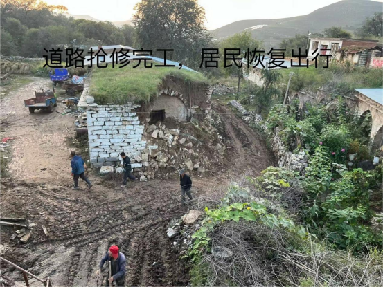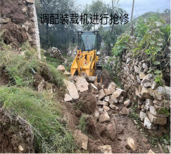 在搶修過程中,工作隊與村民們共同克服了惡劣天氣帶來的困難,裝載機的操作手精準地移除了坍塌的土石,而其他人員則協(xié)助清理現(xiàn)場,確保了搶修工作的順利進行。經(jīng)過數(shù)小時的緊張勞動,破損的窯洞得到了妥善處置,村民們的生活出行秩序得以恢復。