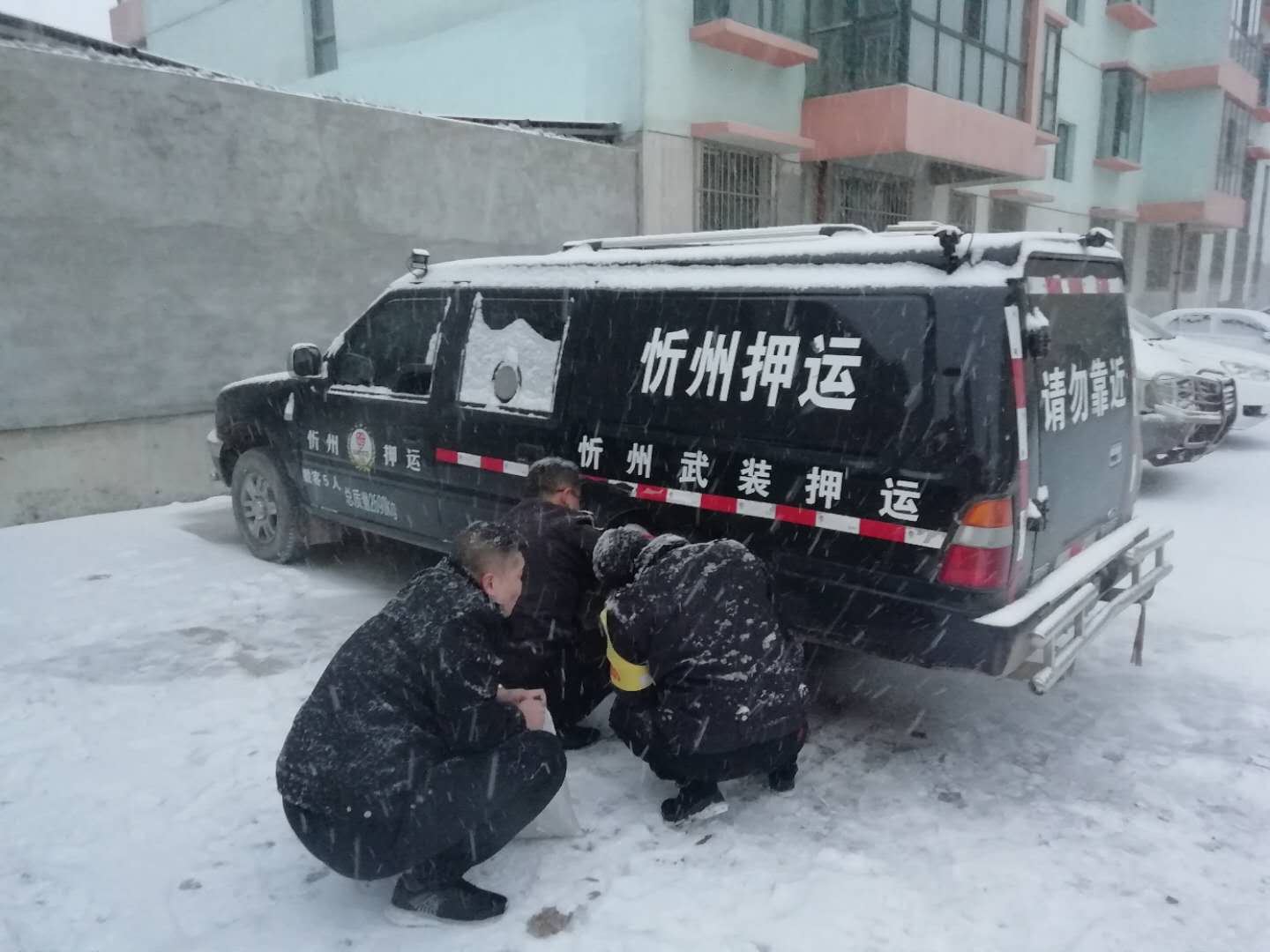 為預(yù)防押運(yùn)車(chē)輛發(fā)生交通安全事故,切實(shí)加強(qiáng)降雪天氣條件下行車(chē)安全管理工作,確保金融守護(hù)押運(yùn)工作穩(wěn)定,把公司安全工作落到實(shí)處,在開(kāi)展押運(yùn)工作中,守押基層中隊(duì)根據(jù)總公司處理雨雪天惡劣天氣預(yù)案,做了全面的安全部署,合理安排車(chē)輛行車(chē)安全,注意檢查車(chē)輛安全性能、行車(chē)車(chē)載設(shè)備及安全帶、防彈頭盔、防彈衣,技術(shù)員隨時(shí)觀察并記錄每輛車(chē)的運(yùn)行路線(xiàn)以及周邊情況。車(chē)輛出發(fā)前,各車(chē)組采取添加防滑鏈,降低行駛速度等安全措施,把好安全關(guān)。中隊(duì)負(fù)責(zé)人和安全員分別跟車(chē),在偏遠(yuǎn)山路地區(qū)與車(chē)組共同接受這場(chǎng)風(fēng)雪的考驗(yàn),給隊(duì)員們不怕遇到雨雪困難,有效的克服各種困難增加了堅(jiān)定的信念,安全順利的完成運(yùn)營(yíng)網(wǎng)點(diǎn)勤務(wù)任務(wù)。