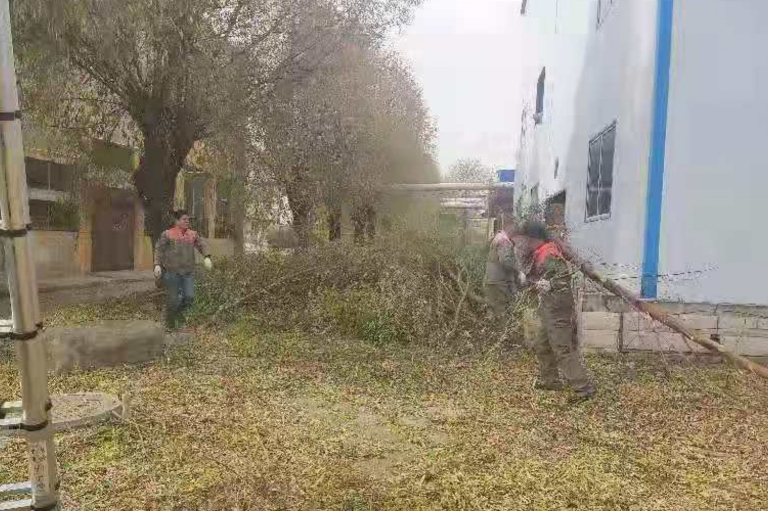 有的同志在樹上使用工具修剪樹枝,有的則在地面撿拾枝葉,還有的用掃把清掃環(huán)境衛(wèi)生,全體參與人員分工協(xié)作,經(jīng)過連續(xù)兩天的緊張工作,院內(nèi)的樹枝全部修剪完畢,辛勤的勞動換來了衛(wèi)生的整潔,保持了集團(tuán)總部辦公新址院內(nèi)的環(huán)境美觀。